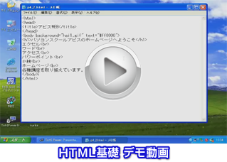 html初心者を対象に、タグの概要、メモ帳からhtmlファイルの作成を中心に基本操作を解説します。またアピスホームページ作成実践練習まで行います。